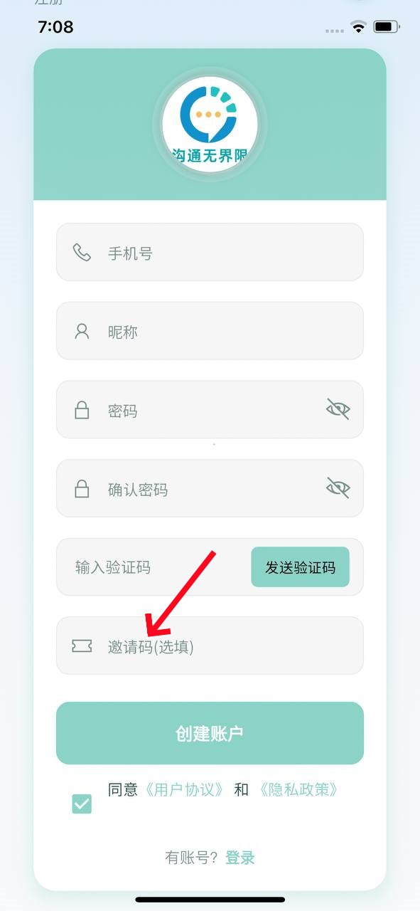 点击去注册进入,输入注册信息,企业邀请码处输入【TT047575】点击创建账户